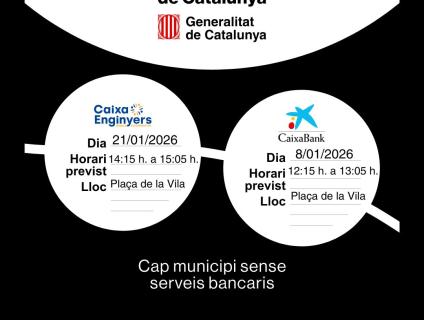 L'Ajuntament de Mont-ral informa dels dies d'aquest mes de gener que el servei de Banca Mòbil de Catalunya farà presència al nostre municipi: